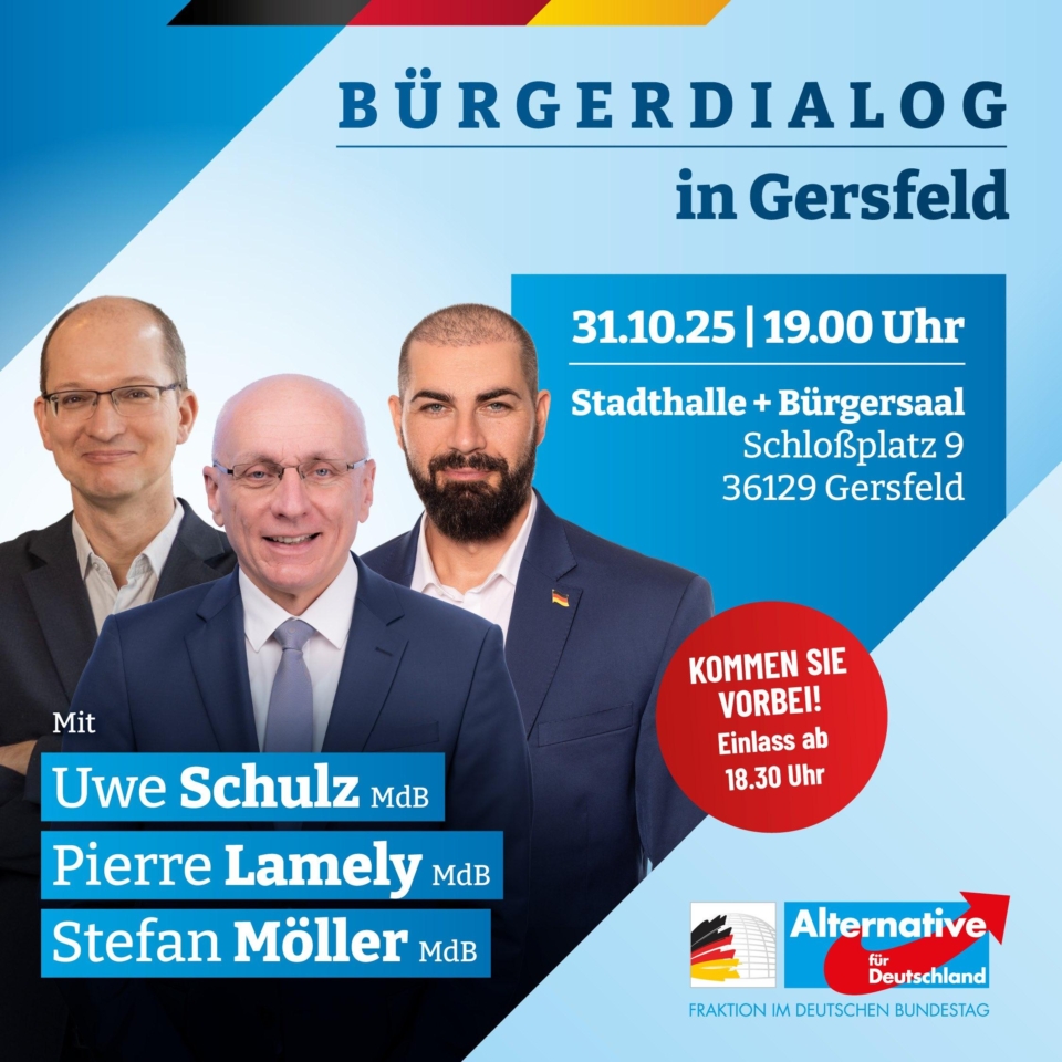 Liebe Bürger, die Landesgruppe Hessen der AfD-Bundestagsfraktion lädt herzlich ein zum BÜRGERDIALOG in Gersfeld am…