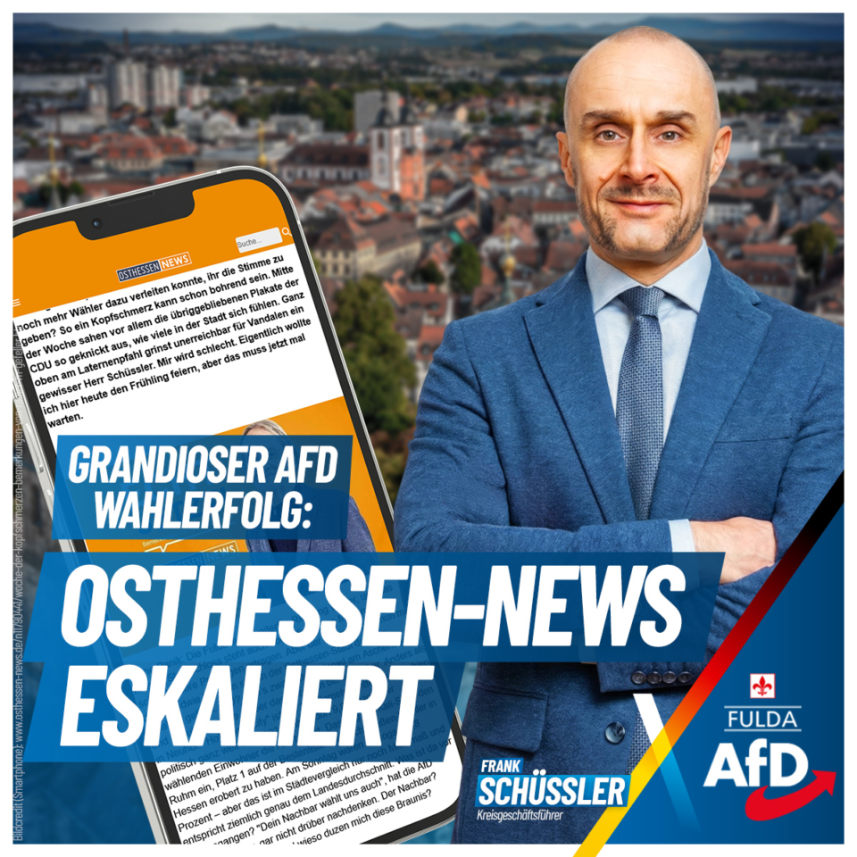 ⚜️ 20 Prozent der Fuldaer Wähler stimmten vergangenen Sonntag für die AfD. Heute folgt das Portal Osthessen-News beim Umgang mit dem Ergebnis mit einer Eskalation. Die abstoßenden Bemerkungen von Autor Rainer M. Gefeller sind kein journalistischer Kommentar mehr, das ist ein emotionaler Ausbruch.