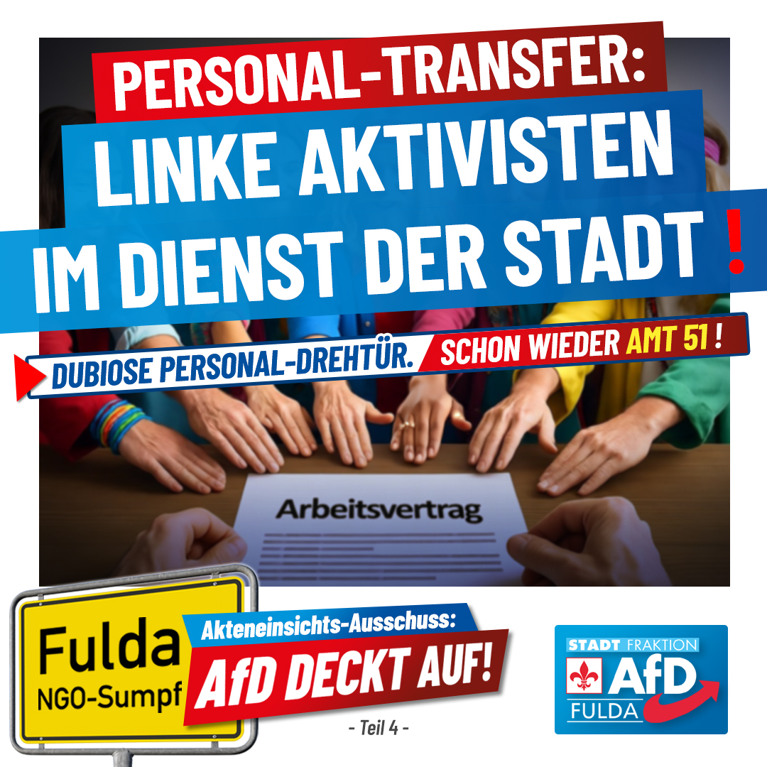 Erfahren Sie in Kürze – im 4. Teil unserer großen Serie über den Fuldaer NGO-Filz – wie es ein anderer Fuldaer Linksverein in den letzten Jahren geschafft hat, auf dem umgekehrten Weg gleich drei seiner Aktivisten in den Dienst der Stadt Fulda zu schleusen ‼️
